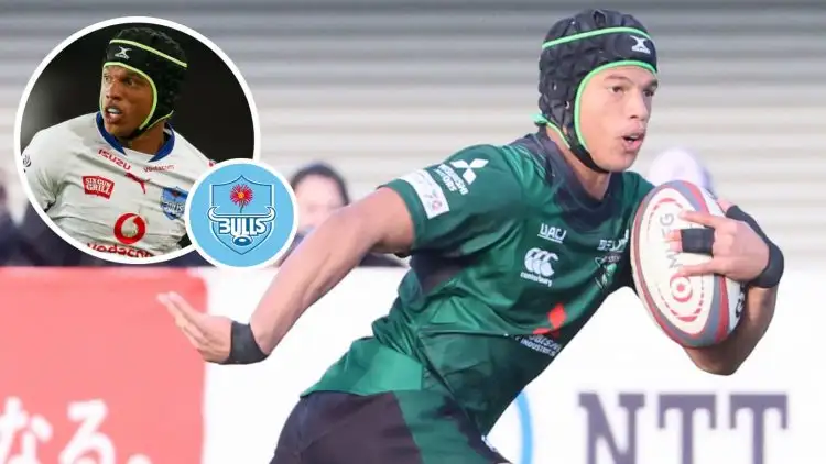 Kurt-Lee Arendse in action in Japan for Mitsubishi Sagamihara DynaBoars and for the Bulls earlier in the season.