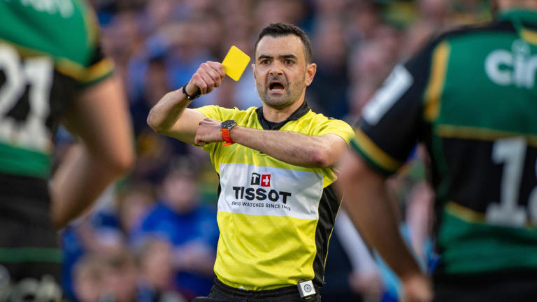 With the clock stopped on 79 minutes in Dublin last Saturday, French referee Pierre Brousset concluded that Northampton’s Alex Coles should be yellow carded and that the ‘try’ by Ross Byrne after he dived on the resulting loose ball while off his feet should not be allowed.