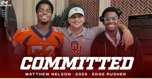 Nelson is OU’s eighth verbal commitment in the 2026 class and the fourth consecutive defender to choose OU, joining Bryant teammate and linebacker Jakore Smith, defensive lineman Brian Harris and safety Niko Jandreau.