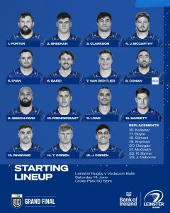 Leinster: Jimmy O’Brien, Tommy O’Brien, Garry Ringrose, Jordie Barrett, James Lowe, Sam Prendergast, Jamison Gibson-Park, Jack Conan (captain), Josh van der Flier, Ryan Baird, James Ryan, Joe McCarthy, Thomas Clarkson, Dan Sheehan, Andrew Porter. Replacements: Ronan Kellher, Jack Boyle, Rabah Slimani, RG Snyman, Max Deegan, Luke McGrath, Ross Byrne, Jamie Osborne