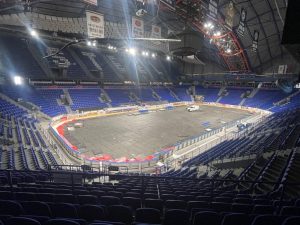 Aktualizácia: Zužujú ľadovú plochu pre košických hokejistov, nafukujú divácke sedadlá. Pridávajú sedadlá k bočným oblúkom.