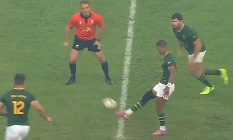 The Springboks deliberately conceded a scrum with the first kick of the game against the Italians as Manie Libbok deliberately kicked the ball less than 10 metres to concede a scrum, with André Esterhuizen clearly offside for good measure.